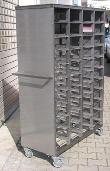Speziell Für den Laborbereich wurde dieser Transportwagen entwickelt. Die Besonderheit der Konstruktion ist die optimale und platzsparende Ausführung.